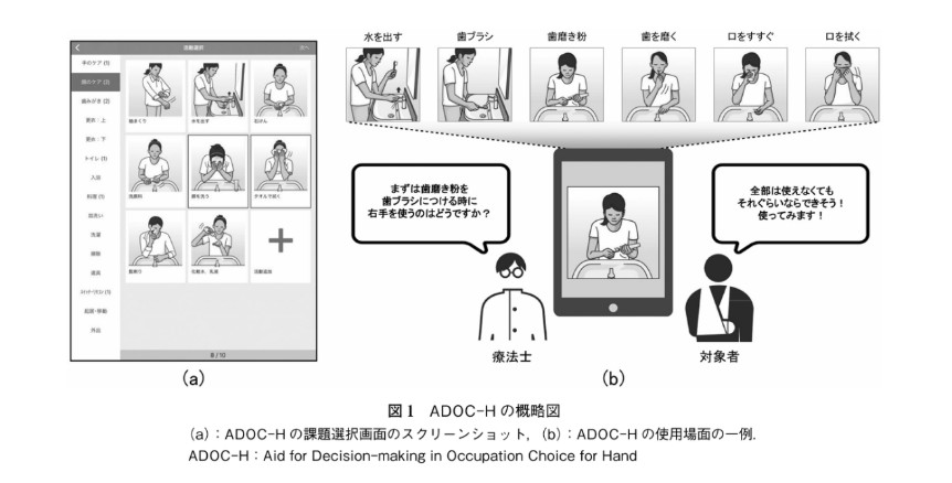- 川口悠子ら.脳卒中後上肢運動麻痺を呈した患者に対してADOC-Hを用いて麻痺手の使用行動に関する行動変容を段階的に進めた事例報告.2021, 作業療法,40: p449-456