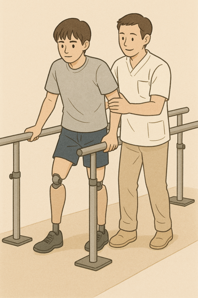 PTは身体機能に特化した専門家です。Aさんの新しい身体の状態を評価し、筋力をつけ、関節を動かし、義足を使って再び歩くための訓練をしていきます。義肢装具士と協力して義足を作成し、何ヶ月にも及ぶ地道な歩行練習を支える、これは身体機能のスペシャリストであるPTだからこそできる支援です。
